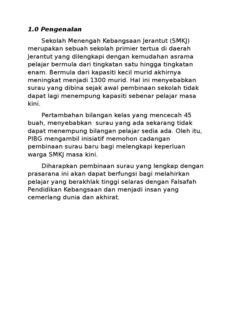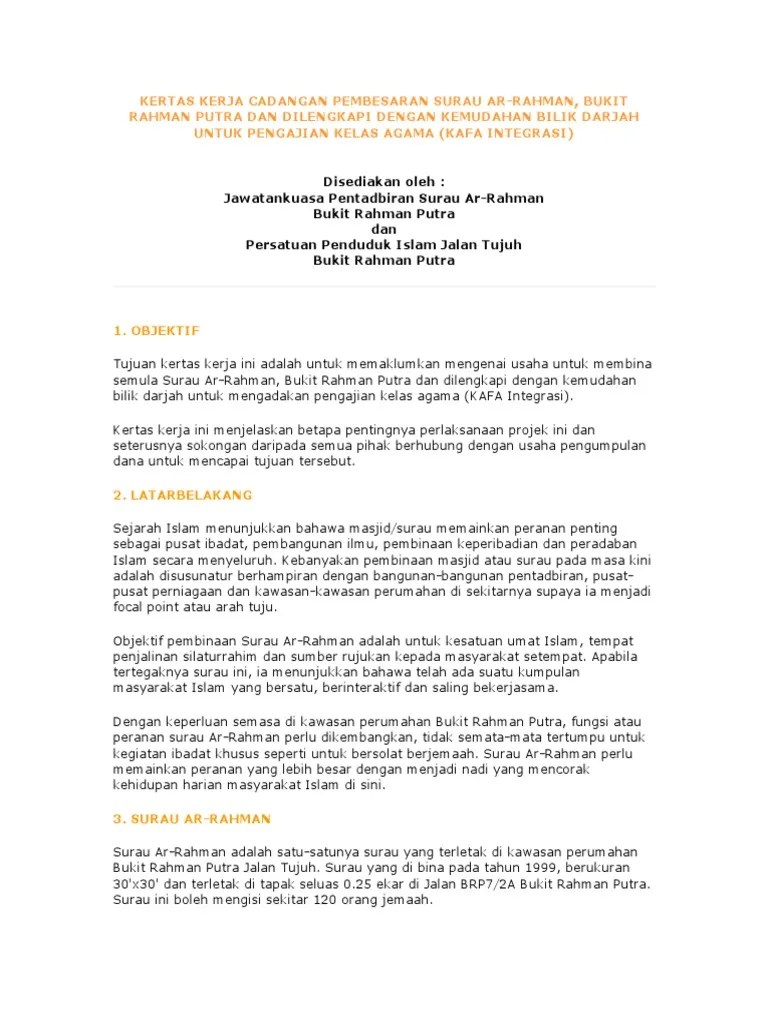 Kertas Kerja Pembinaan Surau Insaniah Hillpark Final 2013 03 20 Compact from reader015.staticloud.net Kertas kerja pembinaan surau sk sultan abdul aziz, ketior tempoh projek kelolaan 1. Kompleks merah al munawarah sdn bhd (1167193 m) lot 4894, kampung chawas, 17500 tanah merah kelantan. Kertas kerja ini akan memberi maklumat lengkap pembinaan surau yang dimaksudkan. Tujuan 1.1 kertas ini disediakan adalah bagi memberi maklumat dan input yang jelas kepada pihak berkuasa mengenai keperluan untuk membina sebuah surau di sk kemahang (2) Yb adun semenyih yb tuan johan b. Kertas kerja <nama program> (hanya dalam bahasa melayu kecuali nama khas & jika melibatkan pelajar a/bangsa ) (persatuan / kelab / organisasi ) universiti kebangsaan malaysia 1.0 tujuan Kertas kerja (proposal) pembinaan surau sk kemahang(2) tanah merah kelantan 1. Scribd adalah situs bacaan dan penerbitan sosial terbesar di dunia.